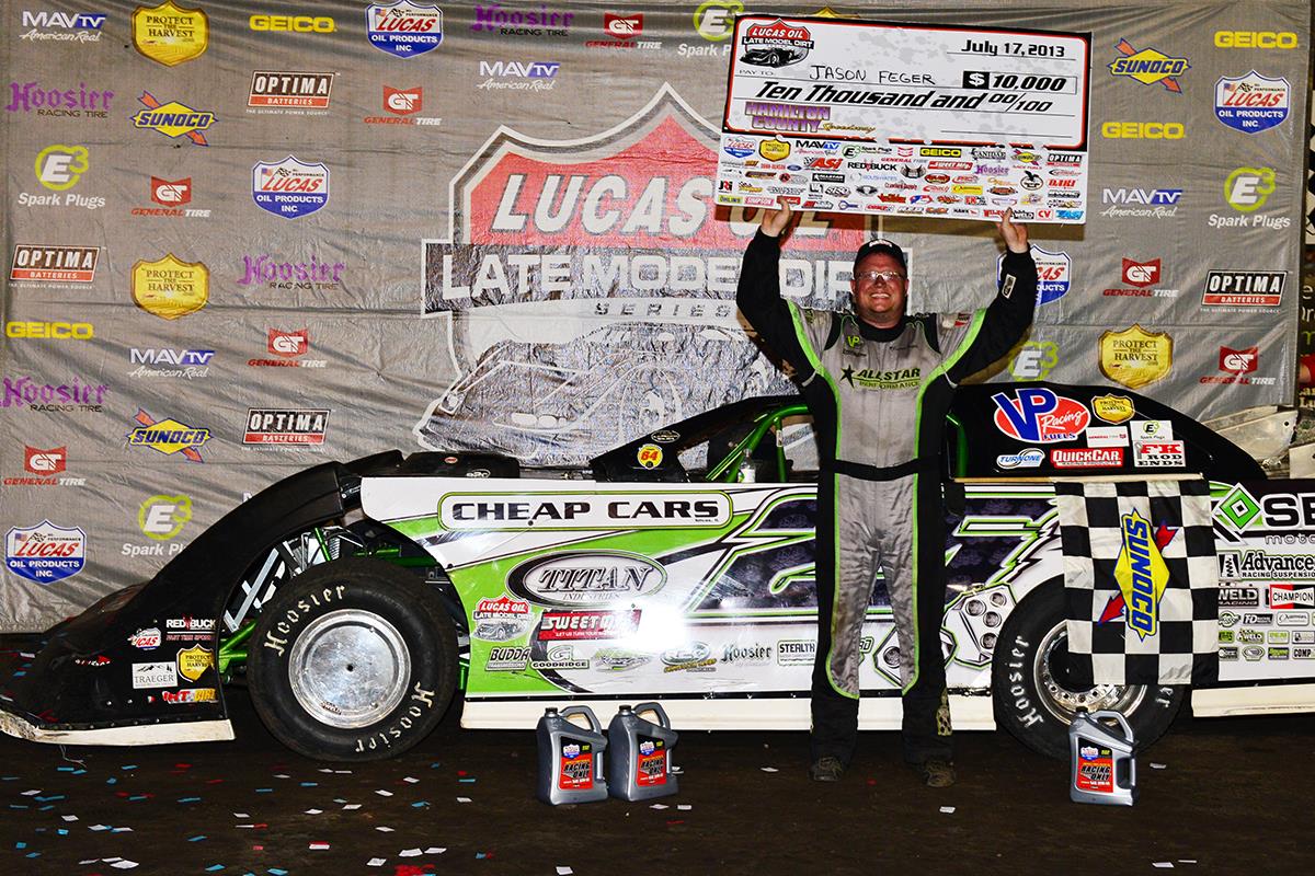 WEBSTER CITY, IA (July 17, 2013) – In his inaugural appearance at the historic Hamilton County Speedway, Jason Feger wins his first Lucas Oil Late Model Dirt Series event.