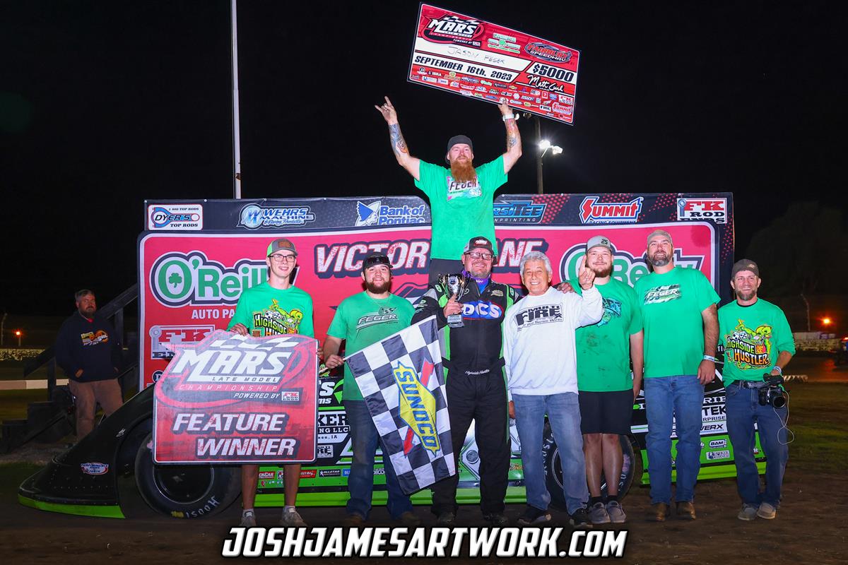 With 30 MARS Championship Series entries on hand at Fairbury Speedway (Fairbury, Ill.) on Saturday, Jason secured his spot into the weekend finale with a fourth-place finish in his heat. Charging from the sixth row, Feger overtook late leader Ryan Unzicker on lap 35 and paced the final six circuits to capture his 14th win of the season and a $5,000 payday. He notched his 23rd career MARS victory ahead of Dennis Erb Jr., Unzicker, Mike Harrison, and Blaze Burwell.