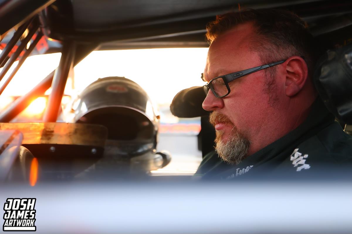 The back-to-back MARS Series champ stormed into Friday’s lid-lifter with an impressive fourth-to-first run in his heat race. After pulling the pole in the redraw, Feger dropped to 16th at the checkers after sliding over the cushion in turns three and four on lap 15.