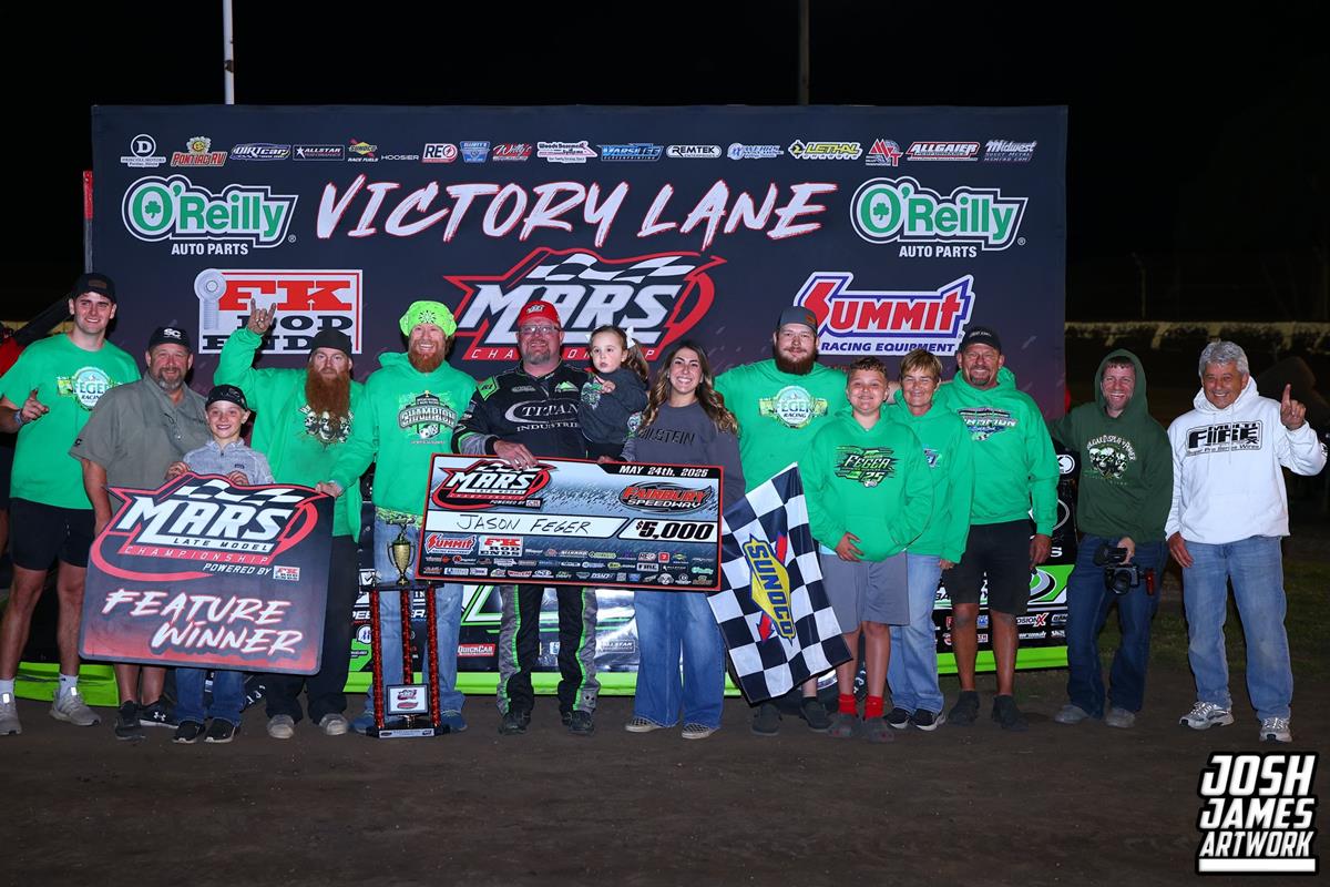 Jason Feger’s Memorial Day weekend with the MARS Late Model Championship Series was highlighted by his fourth win of the season, which came Saturday at Fairbury Speedway.