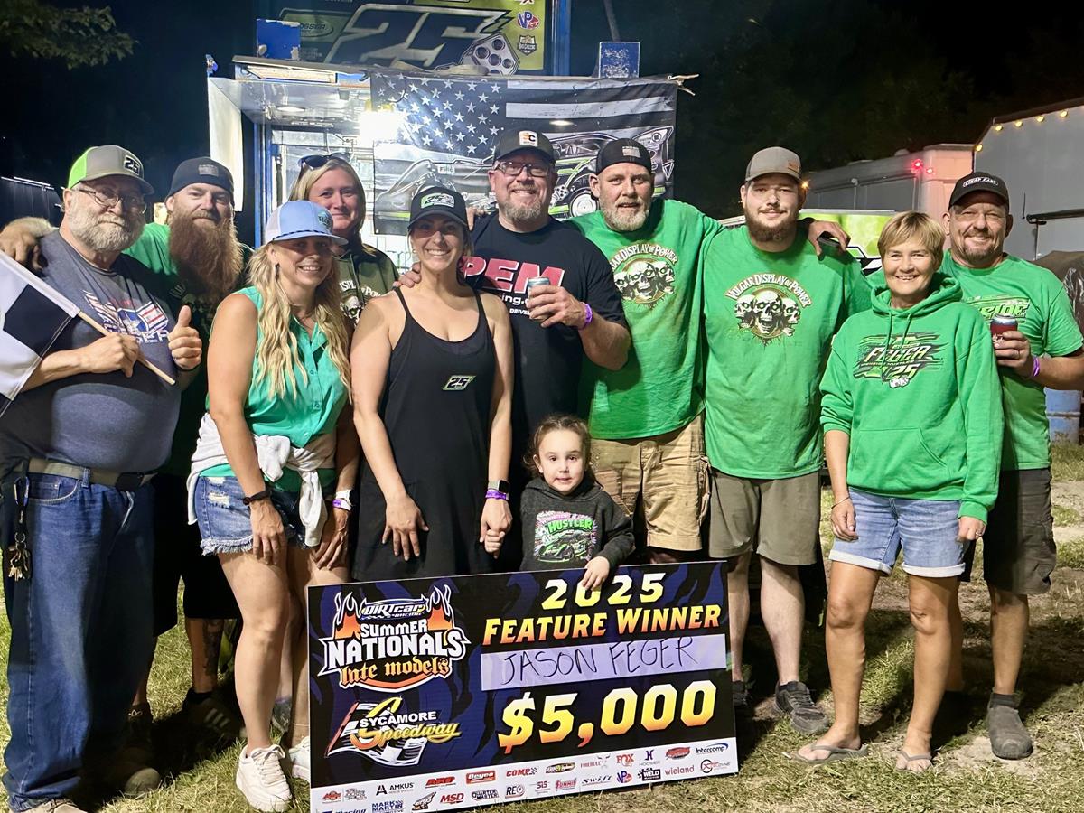 Carrying a seven-point lead over Billy Moyer into Sunday’s Week One finale at Sycamore Speedway, Feger sealed the deal on the opening week title with a dominant 30-lap victory—his second $5,000 triumph of the week.