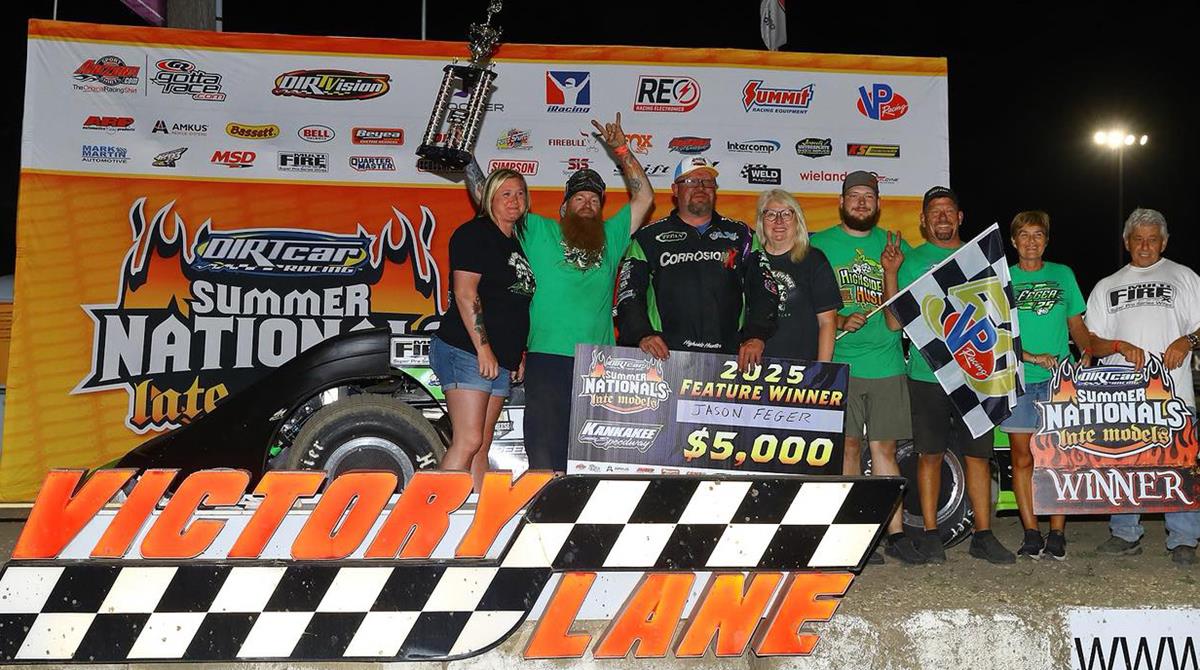 Sunday’s victory marked Feger’s sixth of the season and the 32nd of his DIRTcar Summer Nationals career.